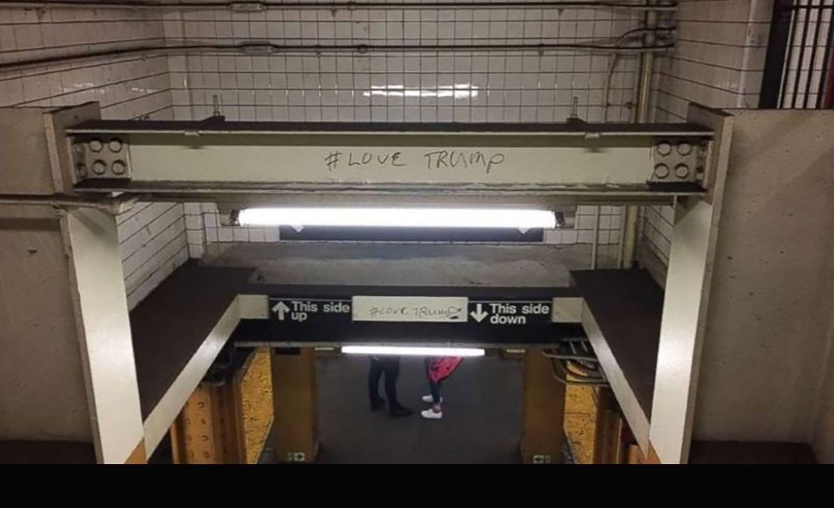 “El hombre apareció para escribir “I love Trump” en la viga, lo atraparon cuando escribía”, dijo Edward Delatorre jefe de la unidad de tránsito del NYPD.