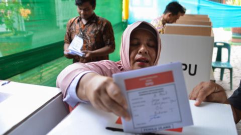 Indonesia celebró una de las elecciones de un día más grandes del mundo el 17 de abril. Crédito: CHAIDEER MAHYUDDIN/AFP/Getty Images