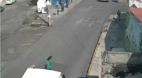 En el video se ve a la mujer pasar sin voltear a ver a ambos lados de la avenida, cuando de pronto aparece circulando una unidad de transporte público que tampoco se percató de que la mujer se atravesó y la atropella.
