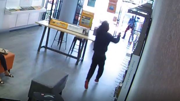 Video: Guardia de seguridad sorprende a ladrones en tienda de celulares