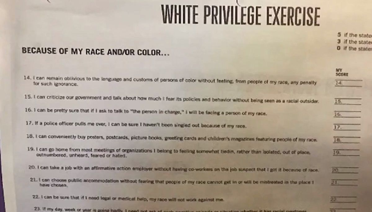 El cuestionario de 26 preguntas se basa en un artículo de la revista académica de 1990 titulado “Privilegio blanco: desempacar la mochila invisible”.