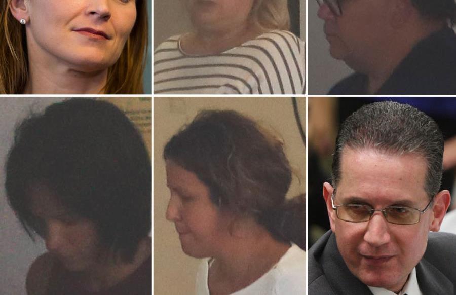 La exsecretaria de Educación, Julia Keleher; la ex directora ejecutiva de ASES, Ángela Ávila; el presidente de BDO, Fernando Sherrer Caillet; las contratistas Glenda y Mayra Ponce; y el contratista Alberto Velázquez Piñol.