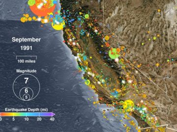 Para darse una idea gráfica de la cantidad de temblores que sacuden al estado cada año el Servicio Nacional de Metodología publicó una animación que reproduce todos los sismos que se han reportado en el Estado Dorado a partir de 1989 finalizando con el terremoto de magnitud 7.1 que sacudió a Ridgecrest el pasado 5 de julio.