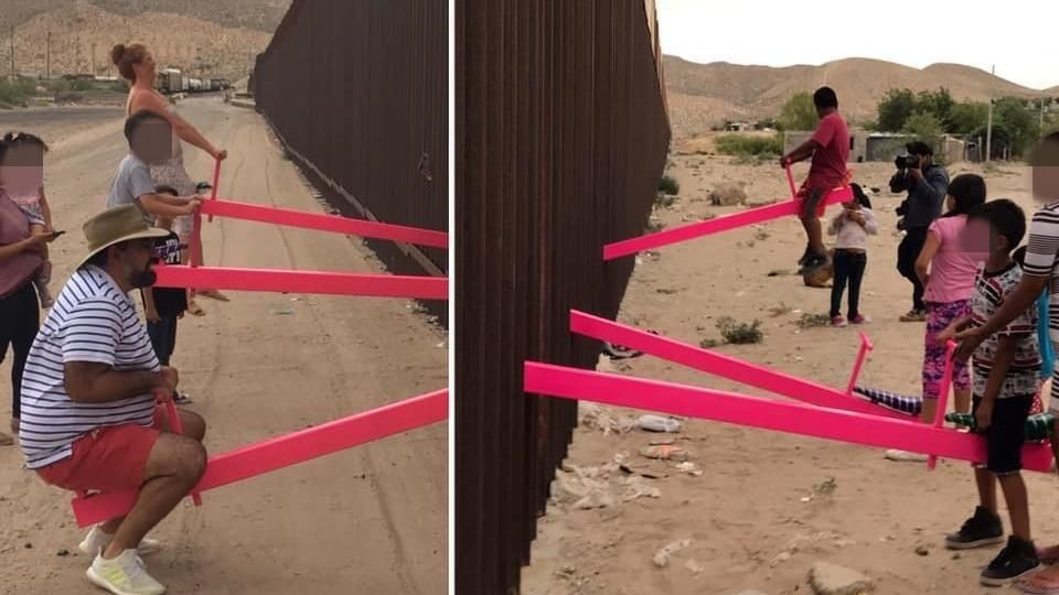 MÉXICO – Adultos y niños de divirtieron de igual manera en los sube y bajas que un grupo religioso colocó en la valla fronteriza, entre Ciudad Juárez, en México, y El Paso, Texas, Estados Unidos.