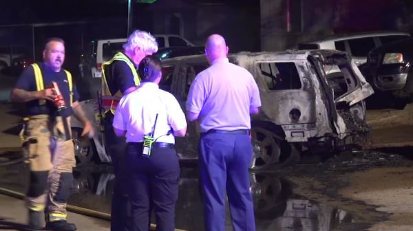 HOUSTON- Oficiales investigan el caso de un hombre que encontraron atrapado en el interior de un vehículo que estaba incendiado el sábado por la madrugada.