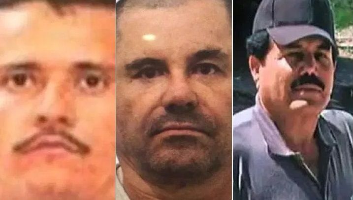 Nemesio Oseguera Cervantes, alias "El Mencho"; Joaquín "El Chapo" Guzmán e Ismael "El Mayo" Zambada. Crédito: DEA