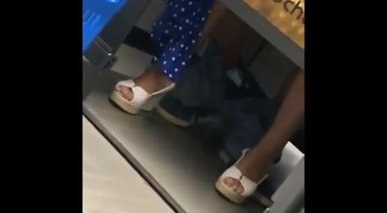 La pareja quedó al descubierto por la puerta que no cubría los pies. Crédito: Captura de video