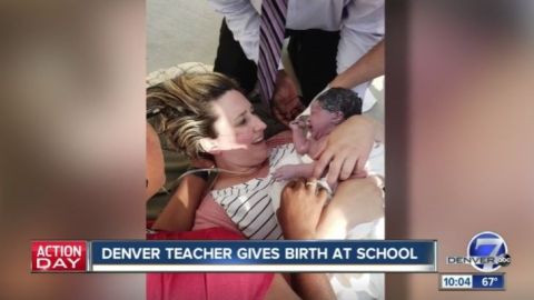 Lindsay Agbalokwu, una maestra de escuela en Denver, se confundió con las contracciones y terminó dando a luz en la acera afuera de su escuela, el primer día de clases.