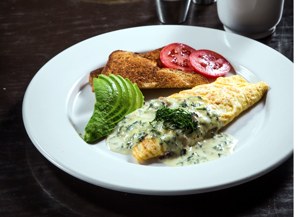 4. Para servir acompaña tu omelette con un par de rebanadas de pan tostado integral, aguacate en rebanadas, tomate y tus salsas favoritas.