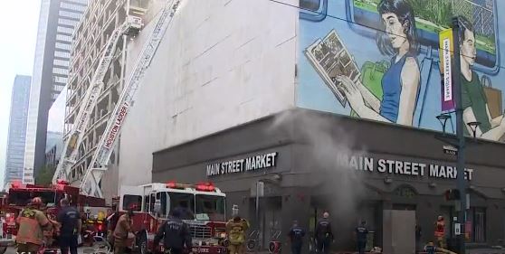 Tres bomberos fueron heridos en el incidente que paralizó la calle Main por una de las zonas más visitadas por el público.