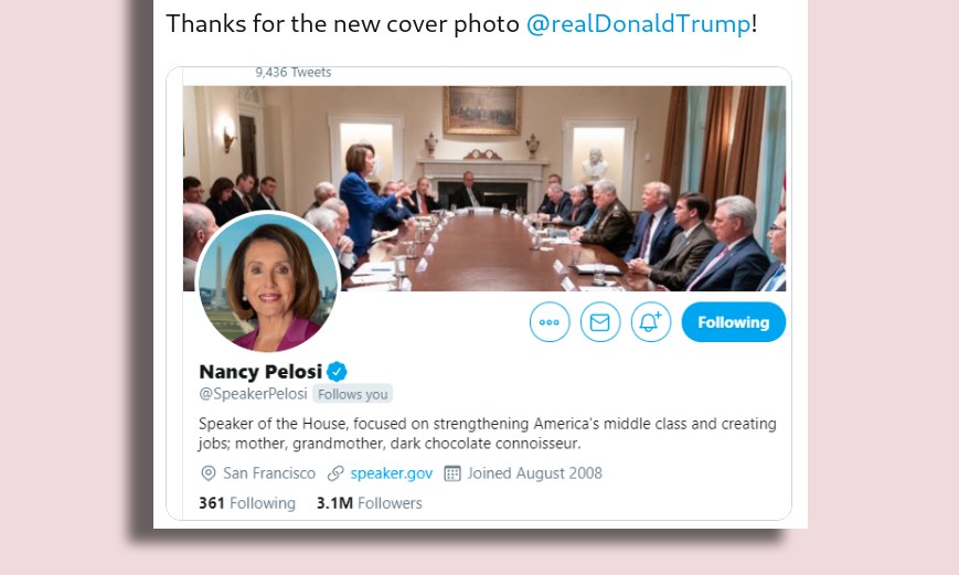 Trump tuitea una foto para referirse a Pelosi. Y ella la convierte en su foto principal para Twitter