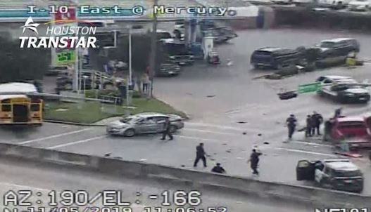 El choque ocurrió a eso de las 11 a.m. por la carretera I-10 Este a la altura de la calle Mercury. Crédito: Houston Transtar