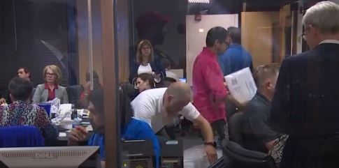 El retraso se debió a que los votos por orden del estado tuvieron que ser recogidos manualmente y conducidos por vehículos al centro de la ciudad para ser contados. Crédito: Captura KHOU 11