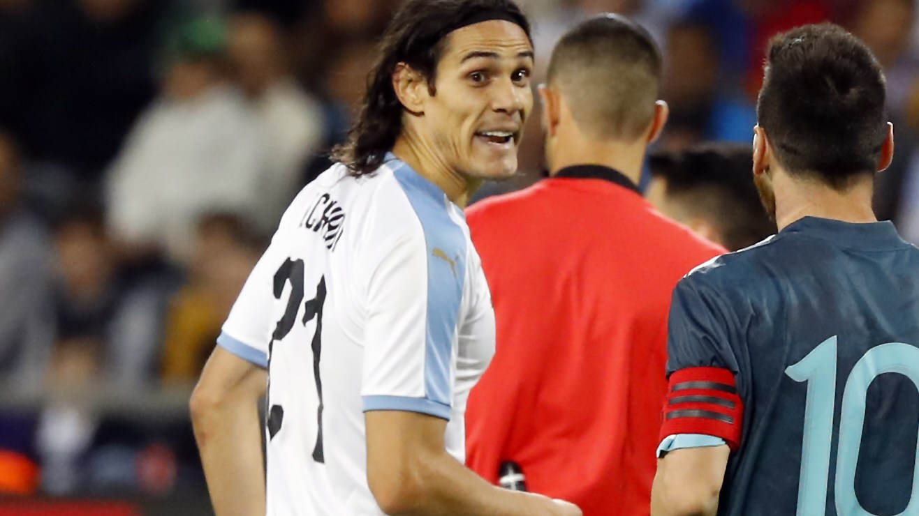 Messi y Cavani se calientan y casi se pelean en el Argentina vs. Uruguay