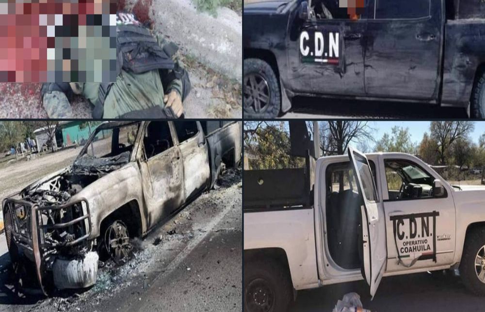 En redes sociales circulan los videos y fotografías del crudo enfrentamiento que dejó un saldo total de 14 muertos en el municipio de Villa Unión, en el estado de Coahuila, entre ellos 4 policías y 10 narcotraficantes del sanguinario Cártel del Noreste (CDN)