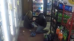 Las imágenes de la cámara de vigilancia mostraron a un hombre apuntando con un arma al empleado de la tienda, quien anunció que estaban sufriendo un atraco.