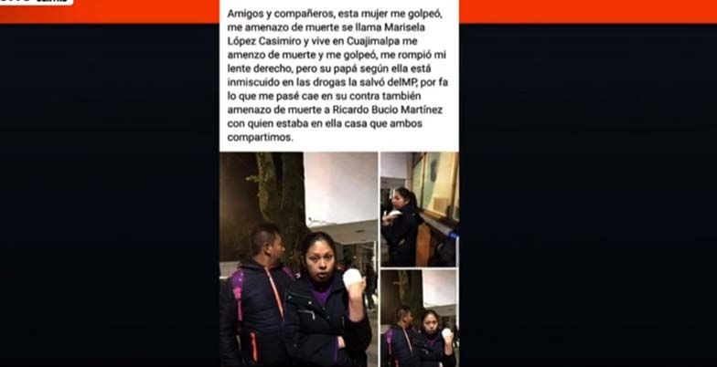 “Amigos y compañeros, esta mujer me golpeó, me amenazó de muerte, se llama Marisela López Casimiro y vive en Cuajimalpa”, inicia la publicación de López Montes de Oca, que además detallaba que la mujer le había roto el lente derecho.