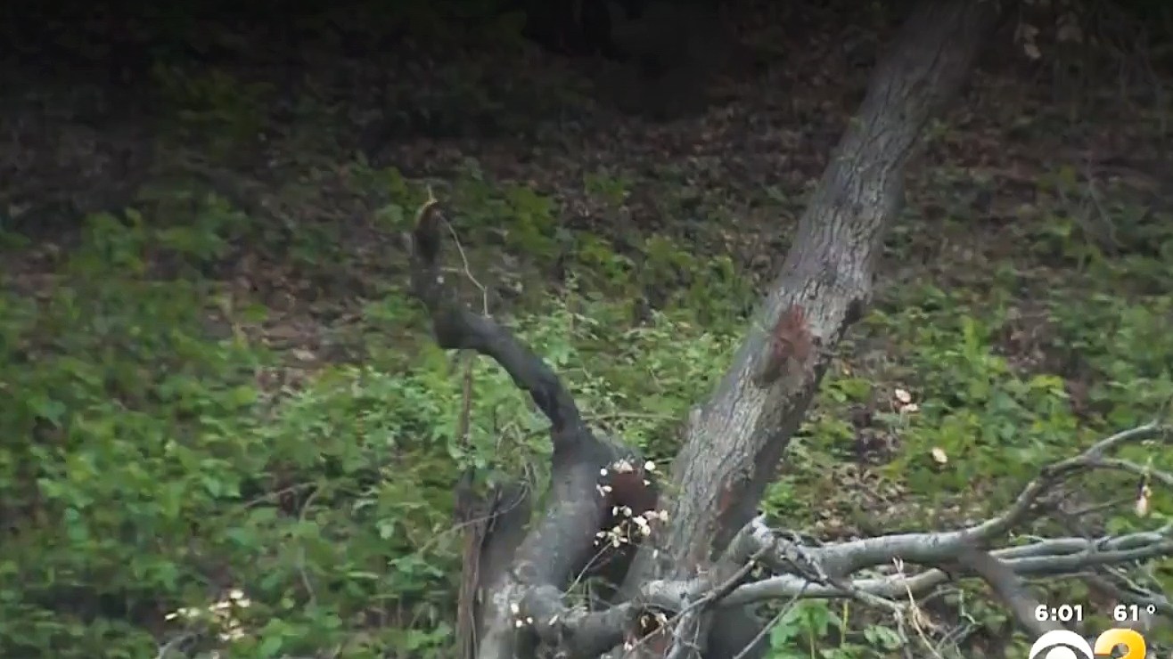 El gran árbol no dio tiempo a nada antes de caer sobre la mujer. Crédito: Captura Video CBS 2