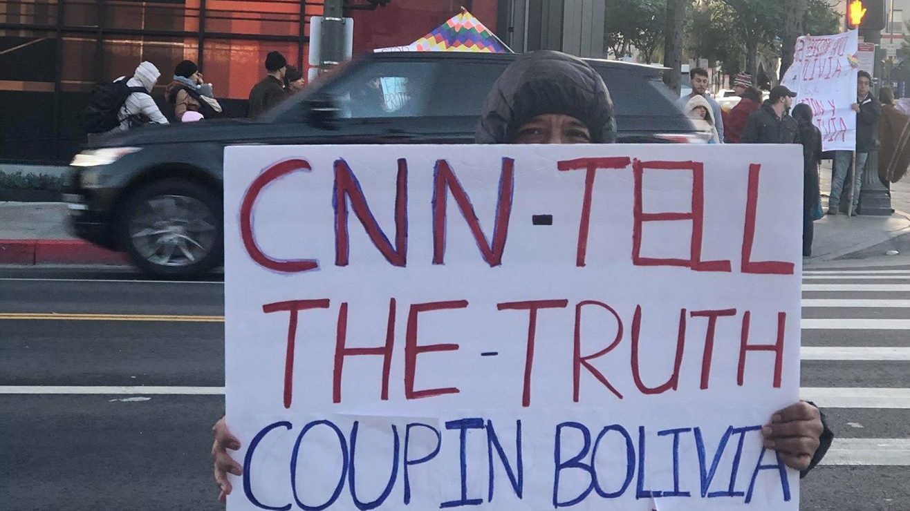 Hace unos meses manifestantes exigieron a CNN una cobertura amplia e imparcial sobre el conflicto en Bolivia. (foto suministrada) Crédito: Foto suministrada