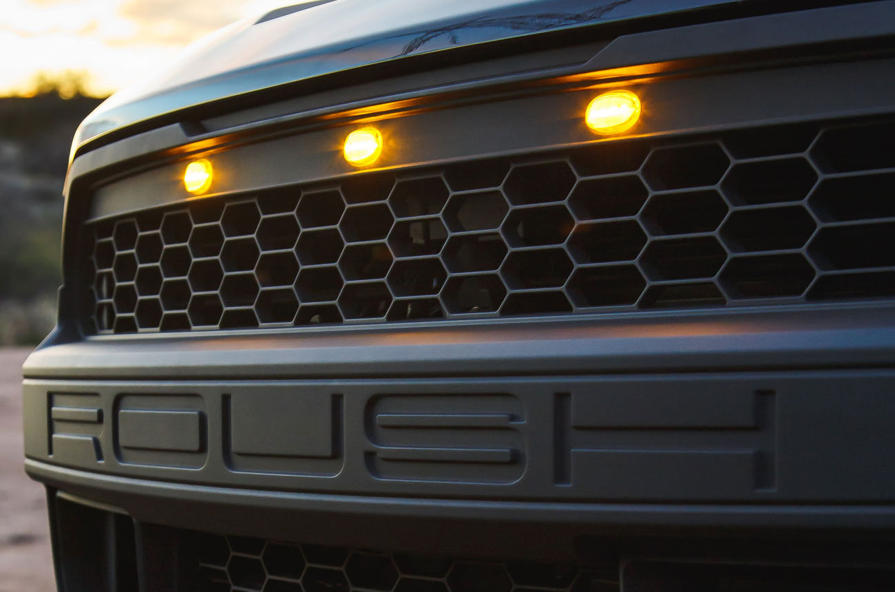 Desde el exterior ofrece llantas de 20 pulgadas en color negro con neumáticos todoterreno de color negro para un mayor rendimiento en distintos terrenos. Su parrilla luce el nombre Roush y agrega tres luces pequeñas en la parte superior, así como nuevos guardabarros.