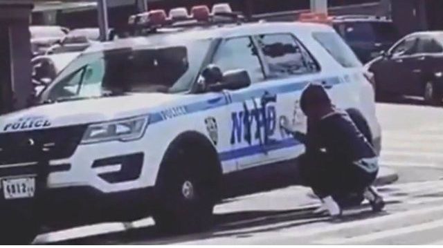 Vandalismo in fraganti contra NYPD en El Bronx Crédito: captura fox news / nypd | Cortesía