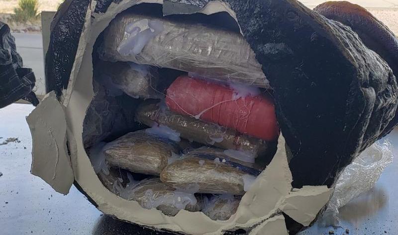 La artesanía de yeso estaba rellena con varios paquetes que contenían diferentes tipos de droga: 4 libras de fentanilo, 3 libras de cocaína y 11 libras de heroína.
