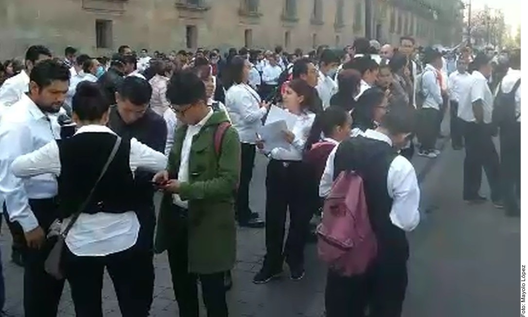 Unos 300 trabajadores de diferentes restaurantes de la Ciudad de México se reunieron afuera de Palacio Nacional para pedir ayuda económica al Gobierno Federal ante el cierre temporal de su fuente de empleo por la pandemia del virus COVID-19.