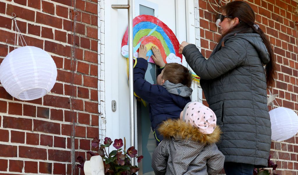 Si bien los paseos por el vecindario todavía están permitidos bajo la restricción de un mínimo de seis pies de distancia de otras personas, los niños salen con la esperanza de ver los arcoiris en las fachadas, convirtiendo el paseo en una divertida cacería de felicidad.