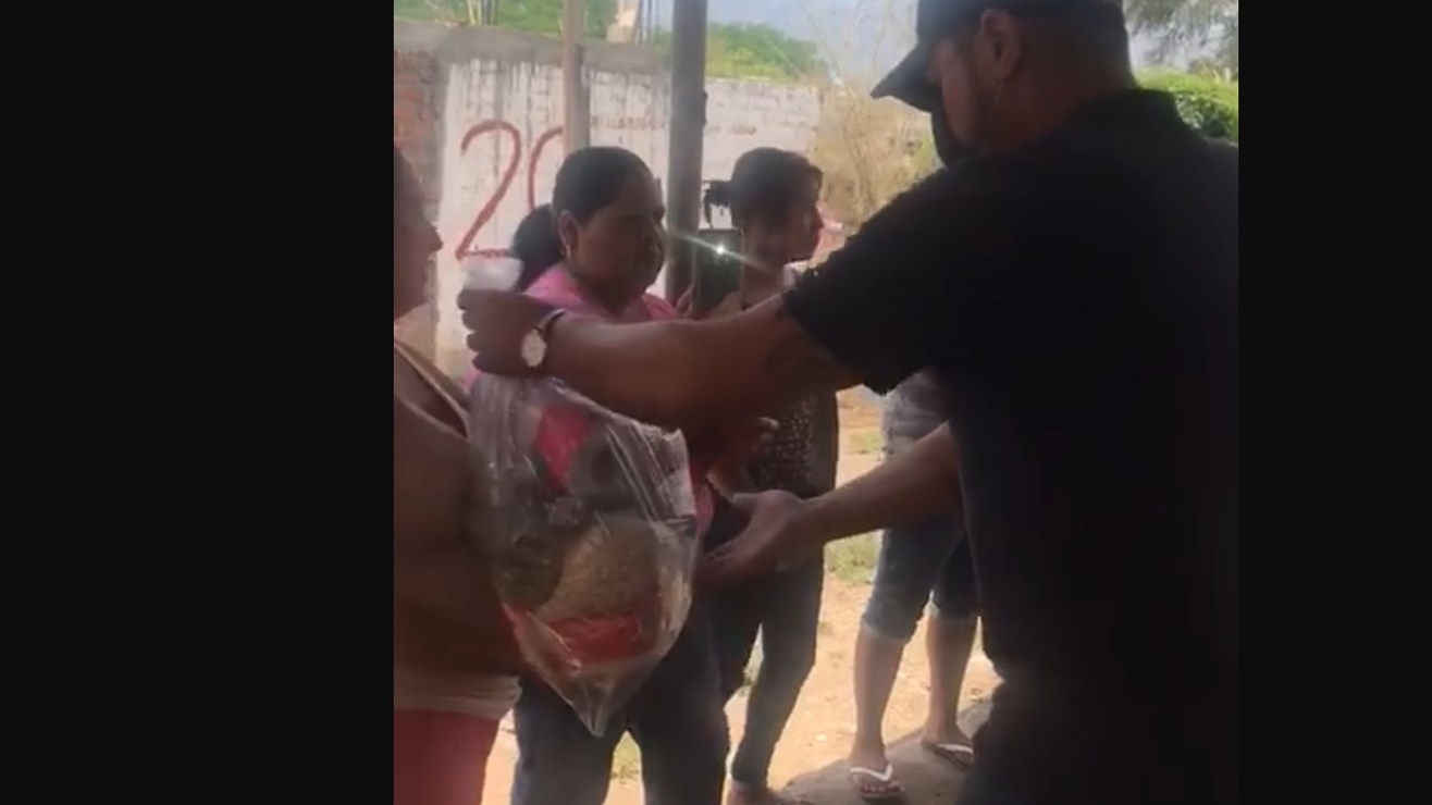 En redes sociales circuló un video en el que otro grupo armado cuando reparte despensas, en Manzanillo, Colima.