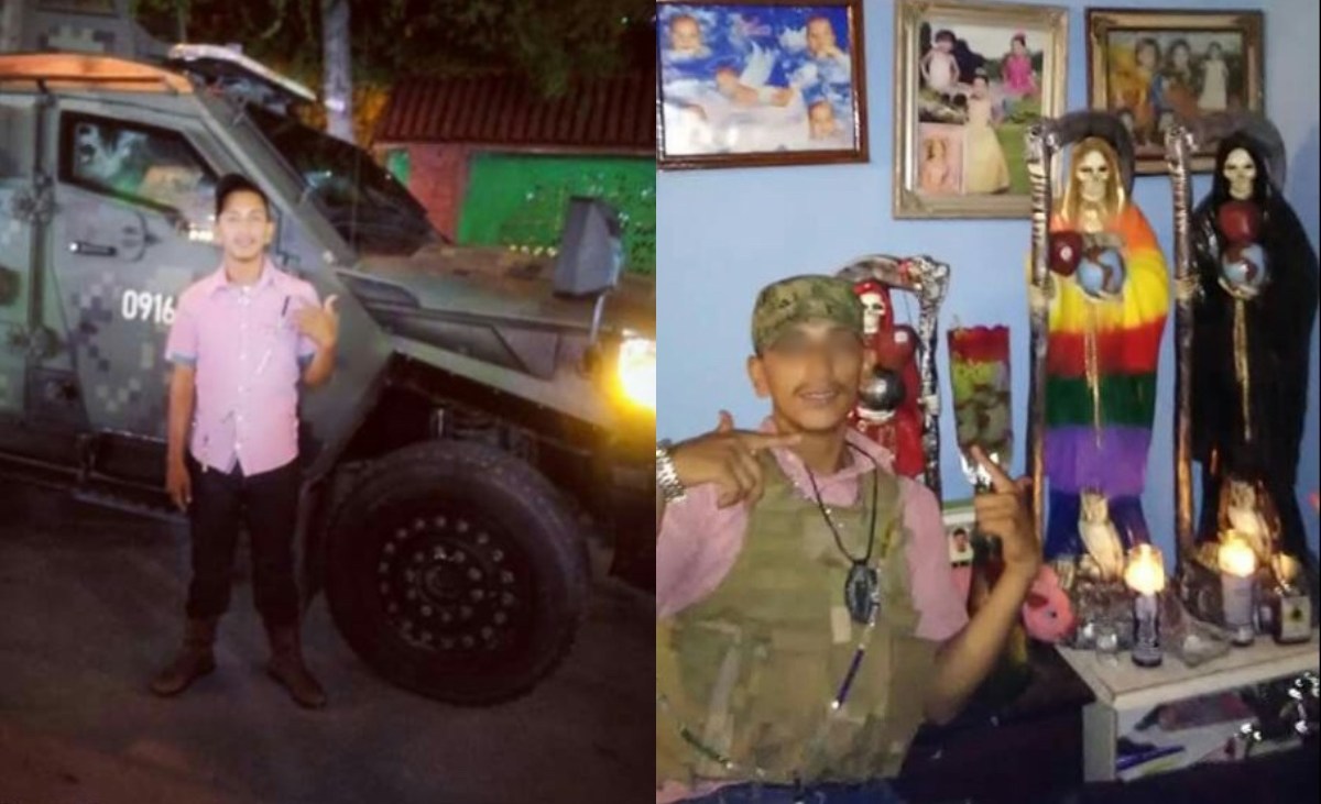 En redes sociales circulan fotografías del sujeto en donde aparece con figuras del culto de la Santa Muerte, a quienes los criminales rinden adoración e incluso a afuera y a bordo de una de las camionetas blindadas que son usadas por el grupo delictivo para cometer sus delitos.
