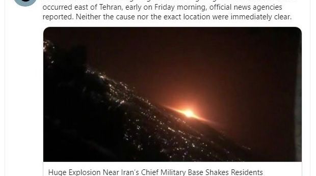 Una gran explosión en el área de una importante base de desarrollo militar y de armas iraní al este de la capital, Teherán, tornó el horizonte color naranja brillante durante varios segundos la madrugada del viernes, informaron agencias de noticias oficiales.