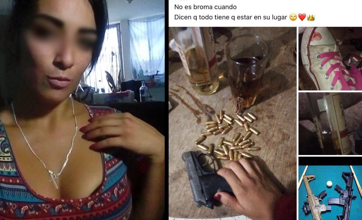 En las imágenes que ella misma comparte en Facebook, la mujer de entre 25 y 30 años de edad enseña armas de grueso calibre, balas, bebidas alcohólicas, fuertes cantidades de dinero en efectivo así como chalecos antibala que usan los grupos del narcotráfico.