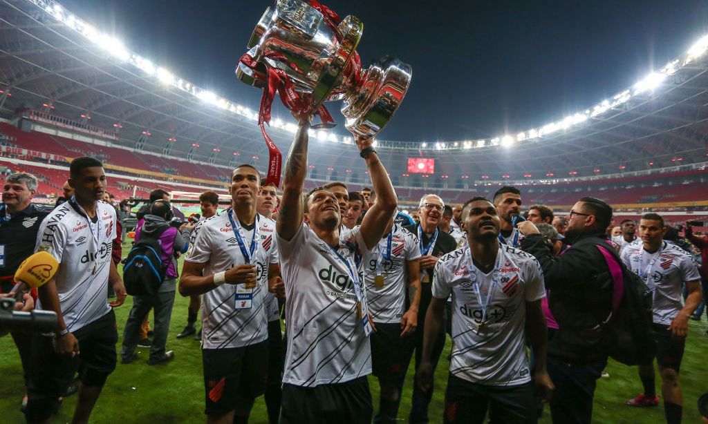 Jugador del Atlético PR levanta la Copa de Brasil. Crédito: Lucas Uebel | Getty Images