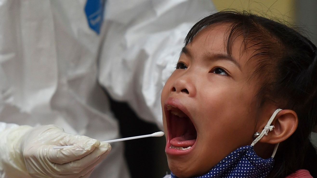 Una niña es sometida a una prueba de COVID-19. Crédito: AFP / Getty Images