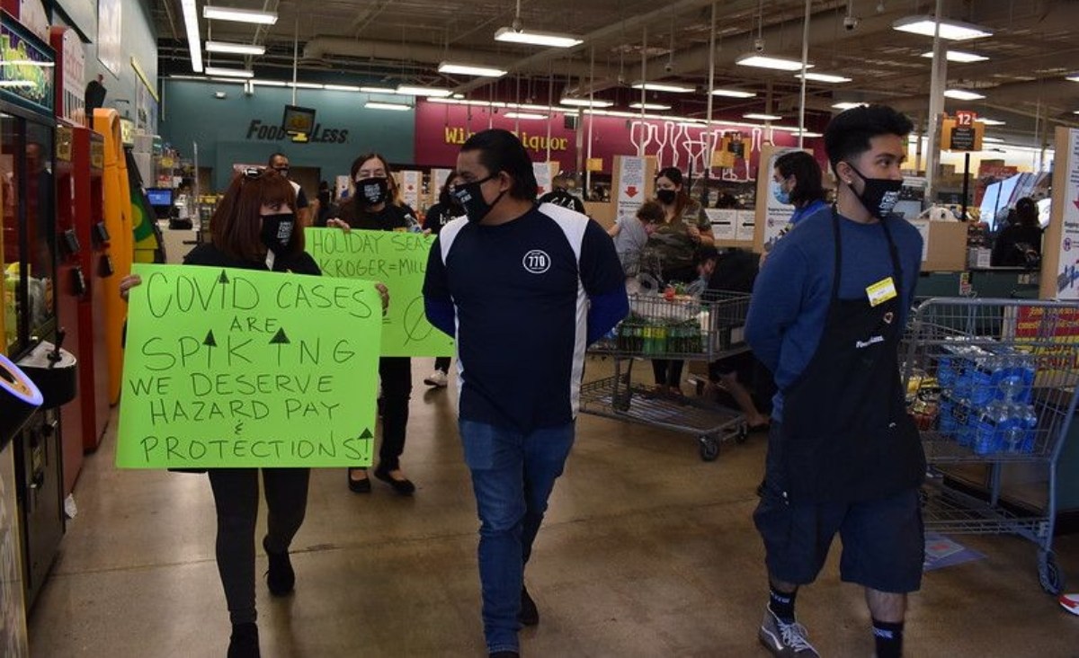Los trabajadores dijeron que mientras ellos ponen sus vidas en riesgo todos los días Kroger, la compañía matriz de Food 4 Less, reportó un aumento del 15.8% en las ventas. Durante el mes de abril los trabajadores recibieron un aumento conocido como “hero pay” pero solo les duró un mes.