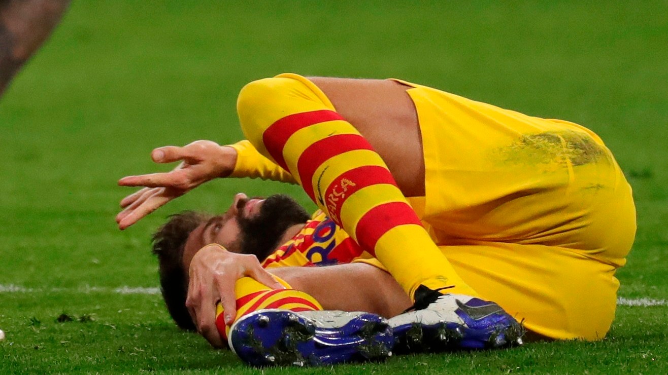 El defensa catalán Gerard Piqué tuvo que salir asistido de la cancha del Wanda Metropolitano luego de una aparatosa lesión que no tiene demasiado buenos pronósticos.