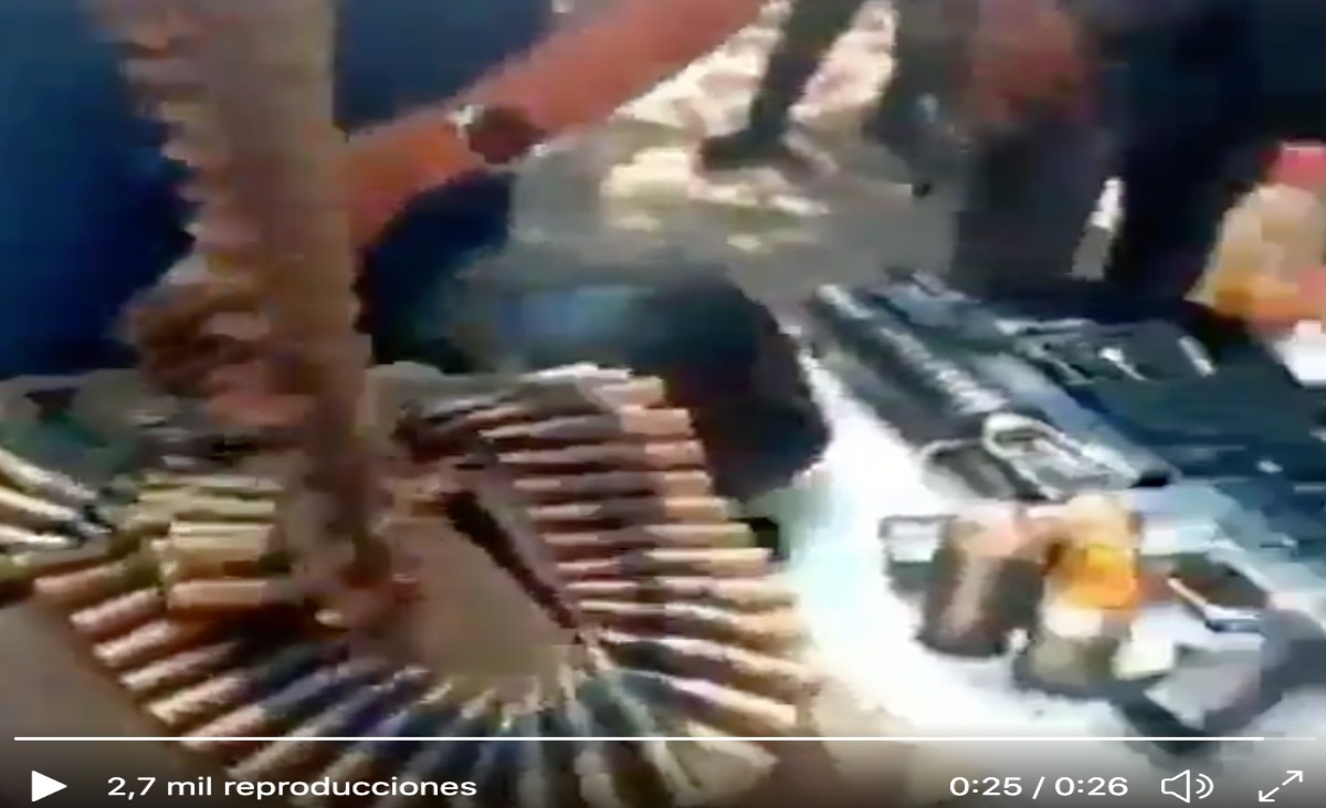 En las escenas se escucha una conversación entre lo presuntos integrantes del La Familia Michoacana mientras muestran armas, balas y equipo táctico abandonado por los sicarios del Cártel Jalisco Nueva Generación.