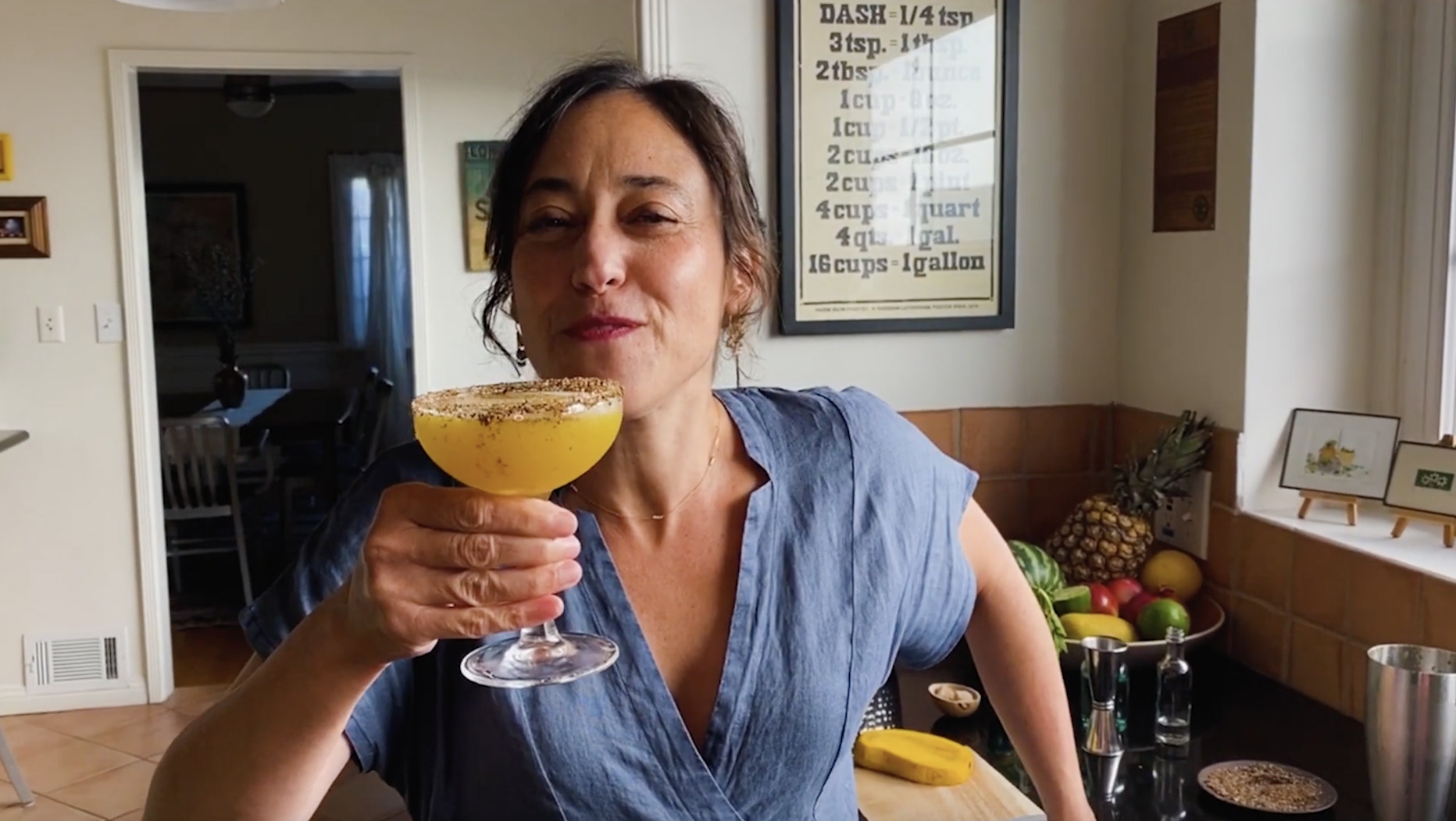 En uno de los videos más populares de la serie, Maite Gómez-Rejón, fundadora de ArtBites: Cooking Art History, comparte una receta que responde a los trabajos del artista mexicano Rufino Tamayo. En esta demostración, la historiadora en artes culinarias, escritora, educadora y cocinera, habla de sus intereses e inspiración, y al mismo tiempo muestra cómo se prepara el mango-pineapple mezcal margarita, un coctel que basó en un cuadro realizado por Tamayo, quien era oaxaqueño, lugar de México donde se produce el mezcal. Esta receta, además de las bebidas con alcohol, incluye ingredientes como chile Tajín, menta, limón y licor de naranja. El video está disponible en unframed.lacma.org.