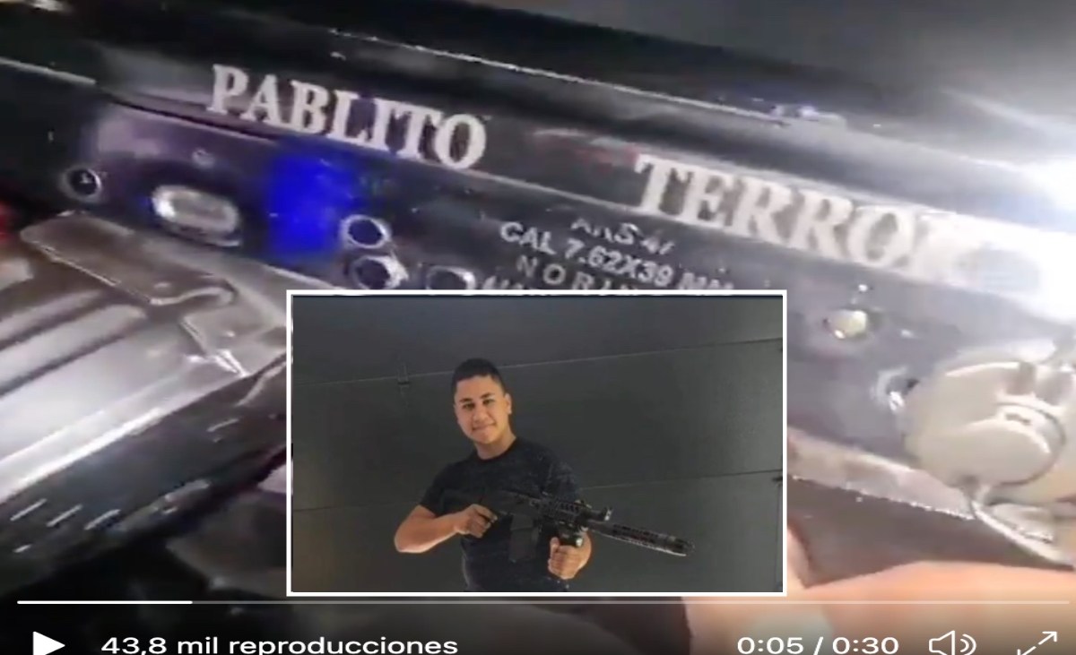 En fotografías el joven aparece con armas de grueso calibre acompañado de otros hombres también armados y en plantíos de droga. Mientras que en videos se le ve también portando rifles de alto poder una de ellas lleva inscrito su apodo: Pablito Terror, eso mientras se escucha un narcocorrido que hace referencia a grupos criminales.