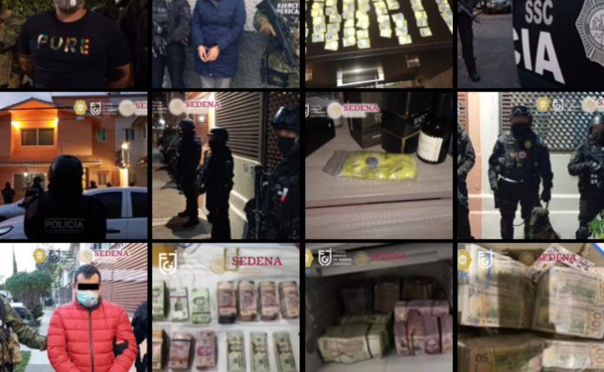 Esto luego de que autoridades ubicaran los domicilios en los que posiblemente se almacenaban narcóticos y armas de fuego de uso exclusivo de las fuerzas armadas, con lo que se pudo identificar los vehículos que posiblemente utilizaban para el transporte de dichos objetos y a las personas, quienes al parecer forman parte de una célula delictiva dedicada a estos ilícitos y quienes probablemente realizaban transacciones de altas sumas de dinero.