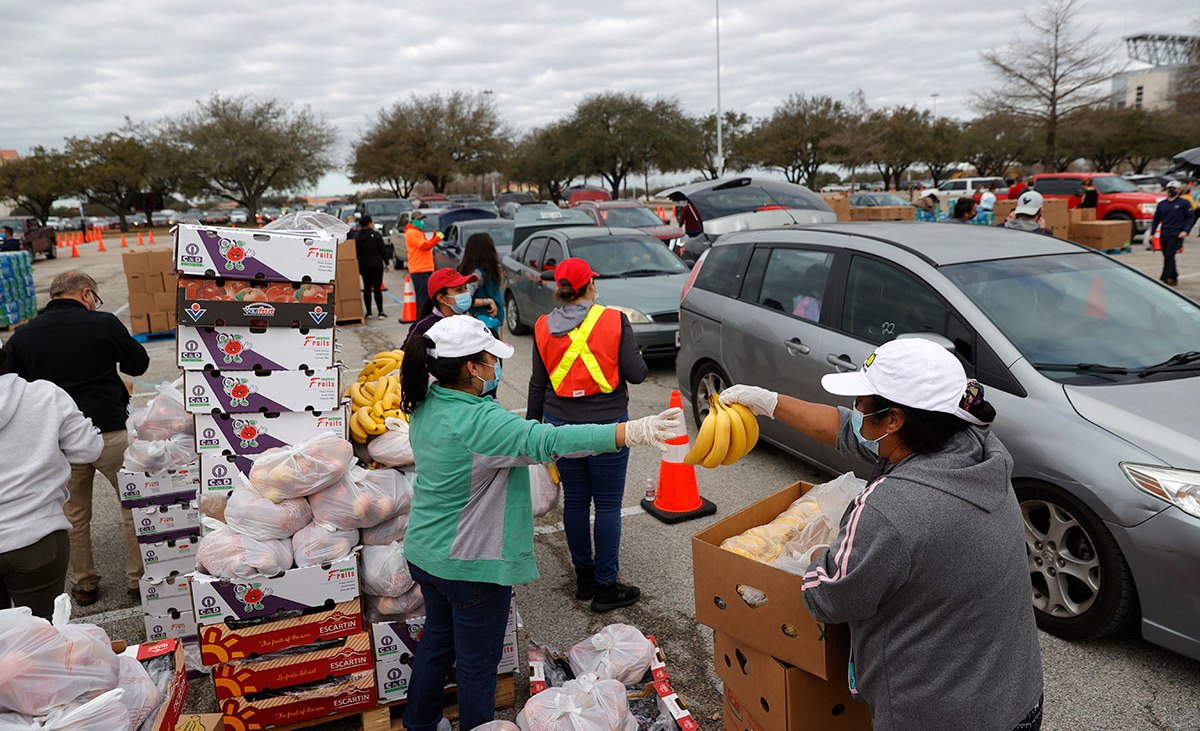 Durante el fin de semana se instalaron centros de distribución en distintos puntos de Texas para repartir agua y alimentos a los afectados por la tormenta invernal
