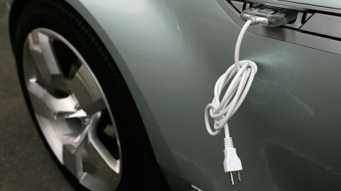 WASHINGTON - JULY 19: An electric cable is attached to the side of a Chevrolet Volt vehicle during a viewing on Capitol Hill July 19, 2007 in Washington, DC. The Volt is a plug-in electric vehicle which will run its first 40 miles without using any gasoline, and then the battery pack will be re-charged by a small internal combustion engine that runs on gas, diesel or ethanol when required. The vehicle is expected to be on the market by 2010. (Photo by Alex Wong/Getty Images) Crédito: Alex Wong | Getty Images