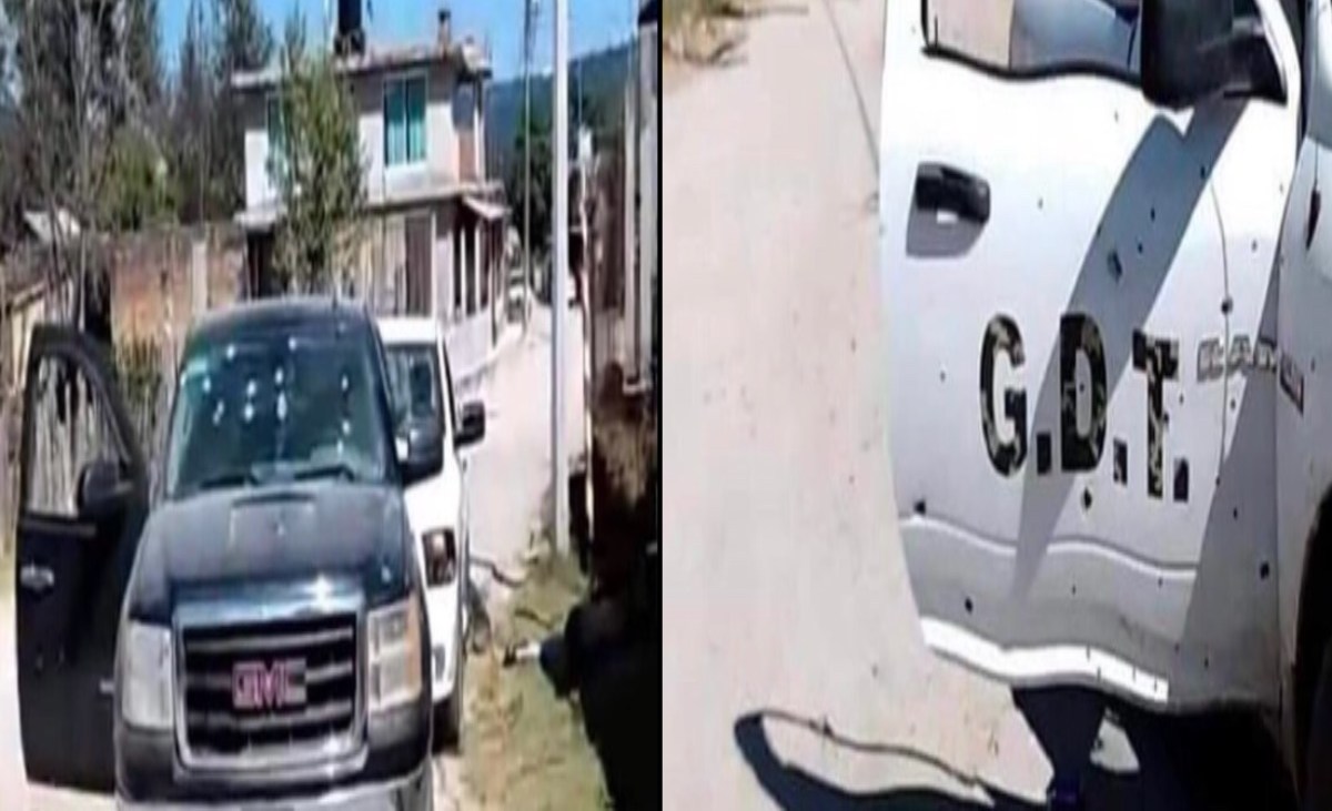 En redes sociales circulan imágenes de las camionetas que a pesar de ser blindadas el grueso calibre de las balas logró penetrar.