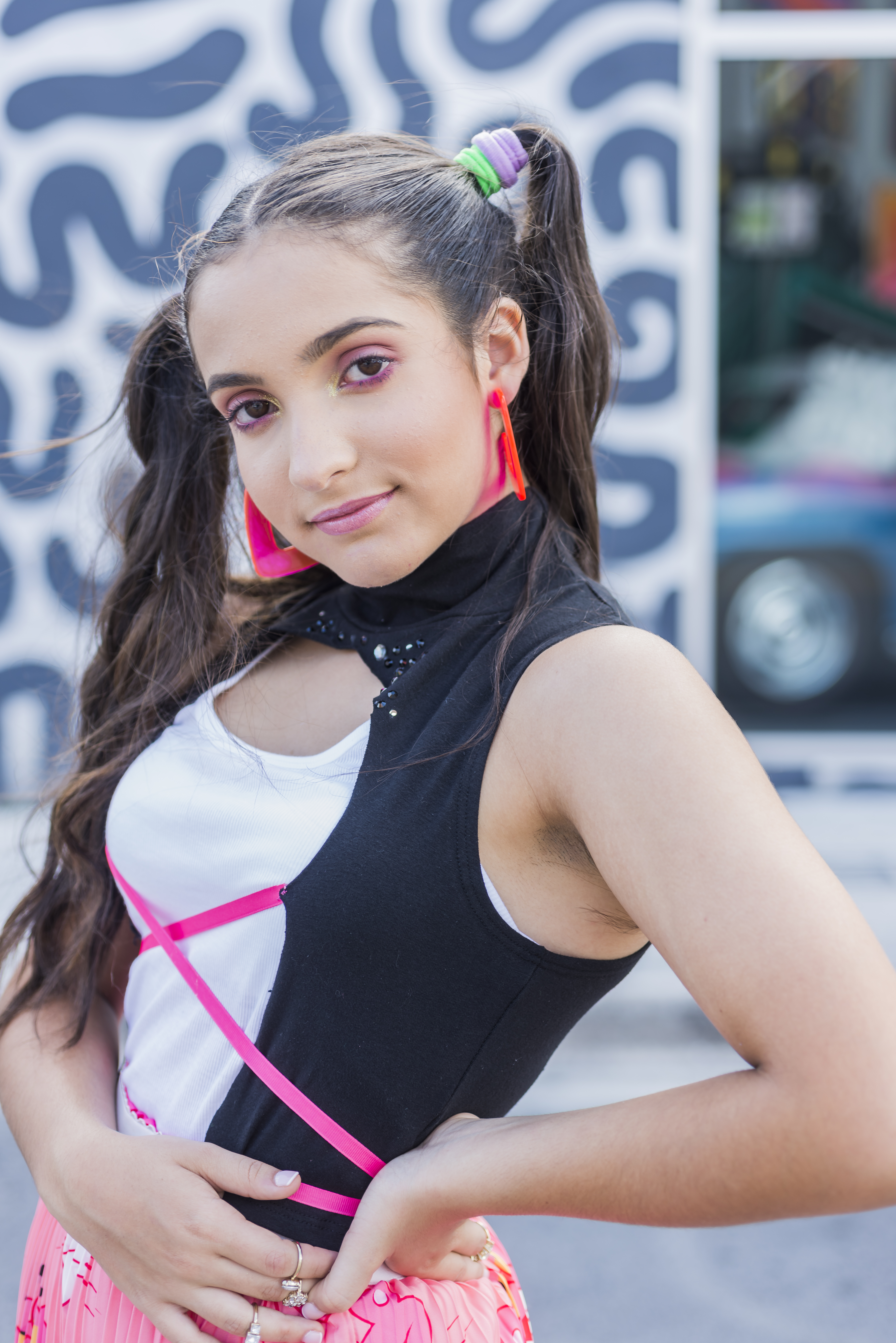 A los 11 años comenzó a hacer videos, como “Moonlight”, una producción en la que deja ver sus dotes de rapera. Porque eso sí, su mayor inspiración son artistas pesadas como Becky G y Nati Natasha.