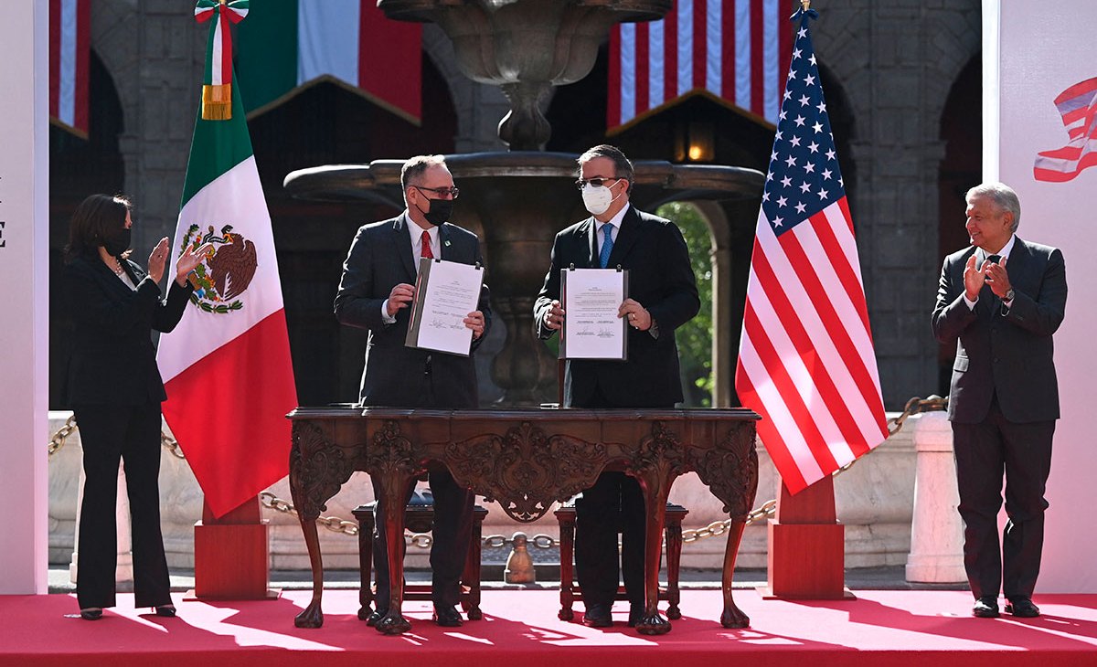 La Vicepresidenta de Estados Unidos, Kamala Harris, y el presidente de México, Andrés Manuel López Obrador se reunieron en la Ciudad de México para firmar un Memorándum de Entendimiento en materia de migración.