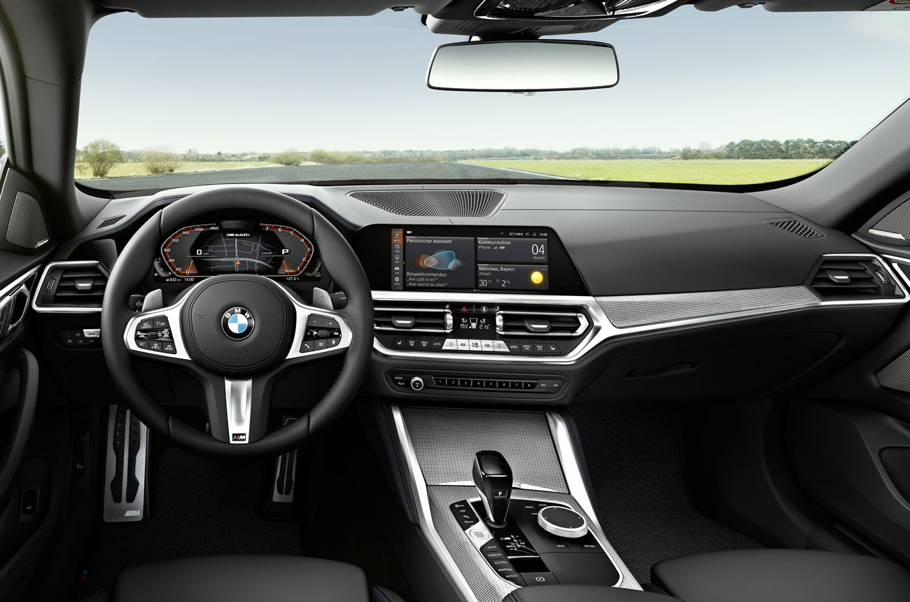 Por dentro el Serie 4 Gran Coupé equipa el Live Cockpit la disposición para el tablero digital de 12,3 pulgadas y otra la pantalla multimedia central de 10,25 pulgadas.