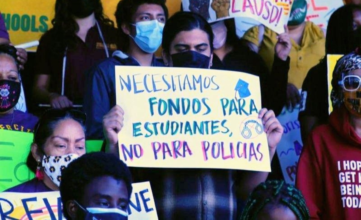 Cansados de la brutalidad policiaca contra las comunidades de color, estudiantes, padres, maestros y activistas locales piden al Distrito Escolar Unificado de Los Ángeles (LAUSD) que retire a la policía escolar de sus planteles.