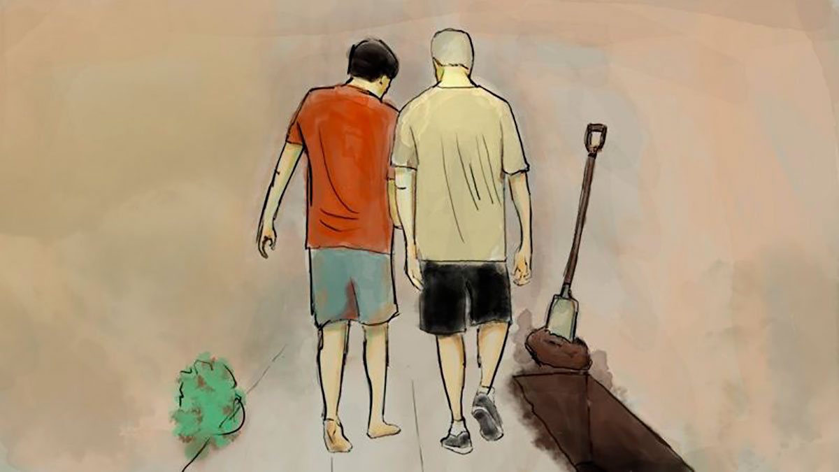 Los dos comenzaron a remover la tierra. Pronto se dieron cuenta de que era más grande de lo esperado. “¿Sabes cuando te llega ese frío por la espalda? Miré a mi hijo y le dije: ‘Me pregunto si aquí enterraron algún animal'”, relata.