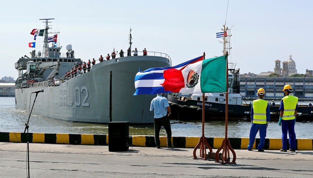 El buque Papaloapan de la Armada de México llegó a La Habana con un lote de 1,283 toneladas integrado por material médico desechable, mascarillas, tanques de oxígeno, gel desinfectante y alimentos