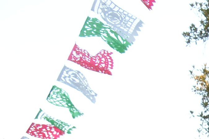 En la colorida fiesta de los mexicanos y sus descendientes nacidos en Estados Unidos, el quiosco de la Placita Olvera fue adornado con papel picado verde, blanco y rojo, los colores de la bandera mexicana, a la que rindieron tributo los integrantes de la Banda de Guerra, “Los Osos de California” del maestro Andrés Cervantes.